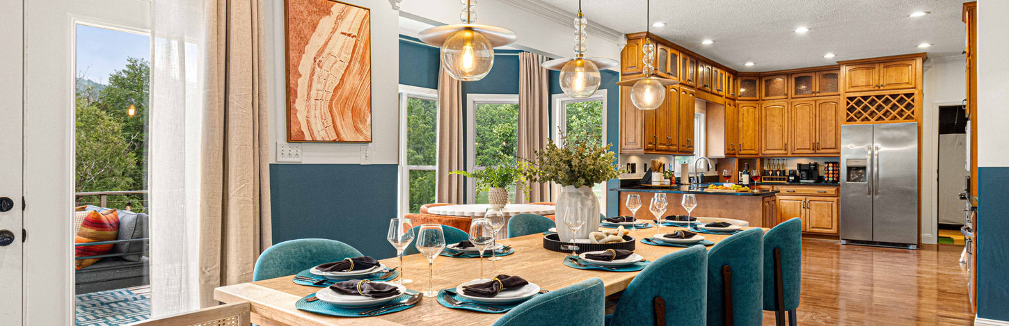 Dining Area with seating for up to 14 guests + outdoor dining for larger groups